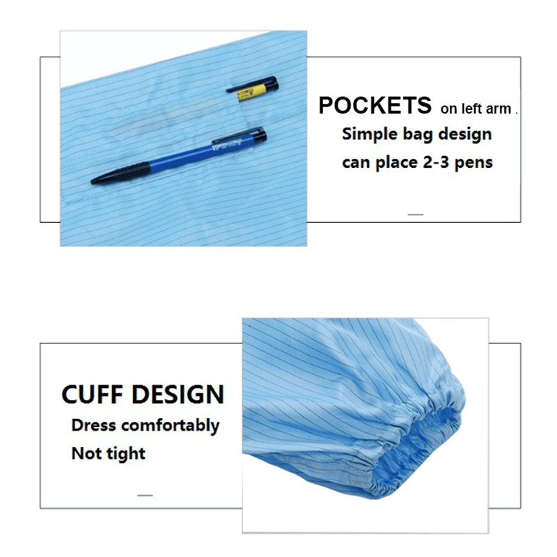 Med hensyn til design er vi særlig opmærksomme på komfort og holdbarhed. ESD-jakken og bukserne er lavet af stoffer af høj kvalitet og er komfortable at have på, hvilket giver god komfort, selv i lang arbejdstid. På samme tid sikrer stoffets slidbestandighed og styrke den langsigtede brug af tøjet og er velegnet til forskellige arbejdsmiljøer.