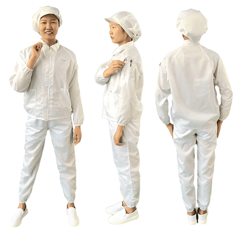 ESD -jakker og bukser er designet til at give fremragende elektrostatisk udladning (ESD) beskyttelse. De er forbundet til jordstationen gennem indbyggede spiraltråde for at sikre, at statisk elektricitet effektivt kan styres til jorden og forhindre statisk elektricitet i at blande sig med følsomt elektronisk udstyr. Denne elektrostatiske afskærmningsfunktion er kritisk for at beskytte elektroniske enheder mod virkningerne af elektrostatisk udladning.
