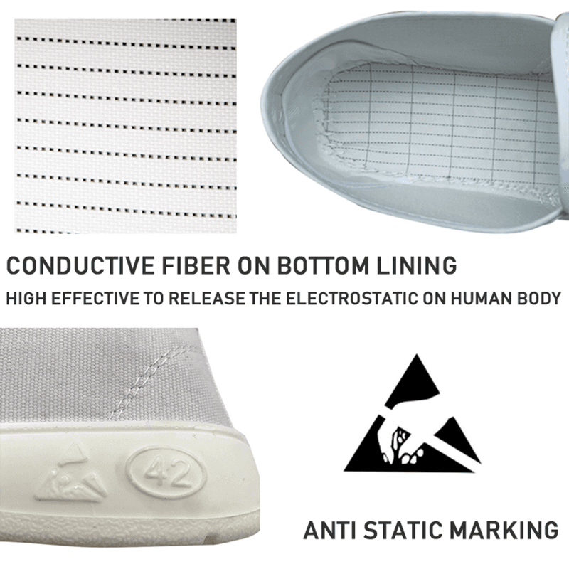 ESD-antistatiske sko er lavet af PU eller PVC, og sålerne er lavet af antistatiske og skridsikre materialer, som effektivt kan udlede statisk elektricitet og undgå de potentielle farer forårsaget af statisk elektricitetsakkumulering. Skoene er videnskabeligt designet til at sikre, at statisk elektricitet kan indføres glat i jorden og derved beskytte sikkerheden ved produktionsudstyr og elektroniske produkter. For at opnå den bedste antistatiske effekt skal antistatiske sko bruges i forbindelse med antistatisk tøj, antistatiske indlægssåler og antistatiske sokker samt antistatiske gulvsystemer til at danne en komplet anti-statisk opløsning.