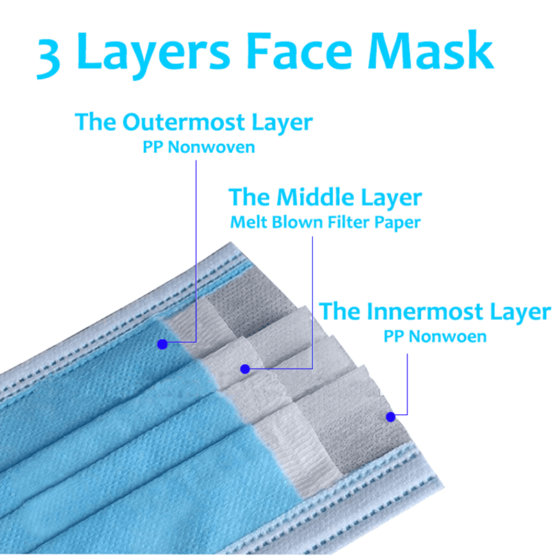 Vores ikke-vævede masker er lavet af mere end tre lag ikke-vævede stoffer, og hvert lag screenes og behandles strengt for at sikre maskernes højeffektive filtrering og komfort. Det indre lag er blødt og hudvenligt, det midterste lag er yderst effektivt, og det ydre lag er vandtæt og åndbar. Dette flerlagsdesign kan ikke kun effektivt filtrere partikler og dråber i luften, men også opretholde åndbarhed og komfort, når den bæres i lang tid.