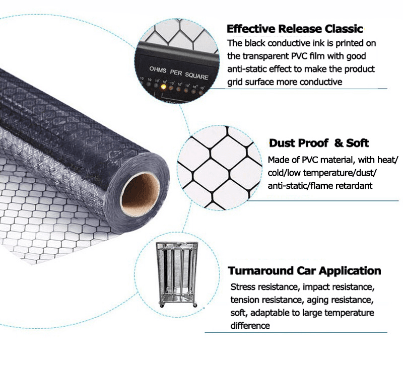 - Ledende ydeevne: Sort ledende blæk er trykt på PVC -filmen for at danne en gitterstruktur, hvilket sikrer fremragende ledende ydelse.