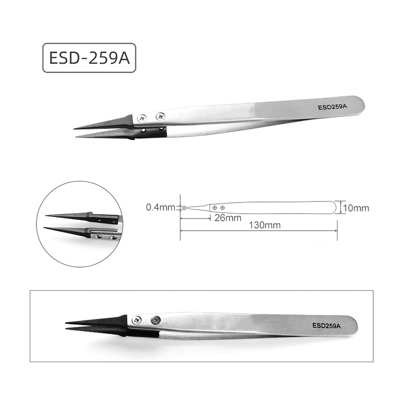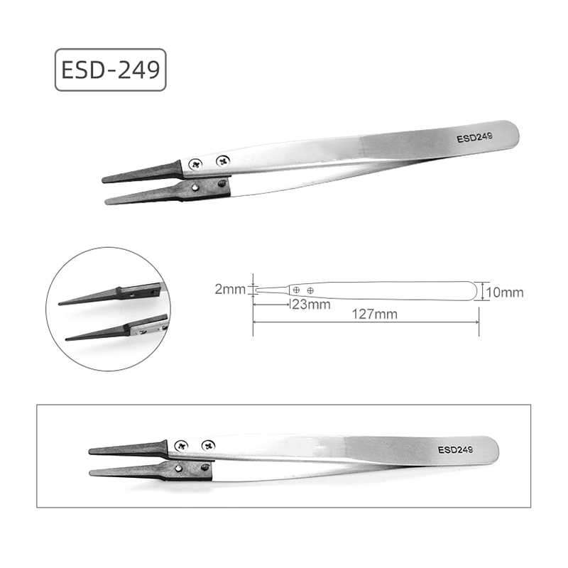 Antistatisk udskiftning af pincet er et uundværligt værktøj inden for elektronisk fremstilling, urreparation, smykkebehandling, stofinspektion og kemiske laboratorier. Det kan ikke kun nøjagtigt betjene små dele, men også effektivt forhindre statisk elektricitet i at skade følsomme komponenter.