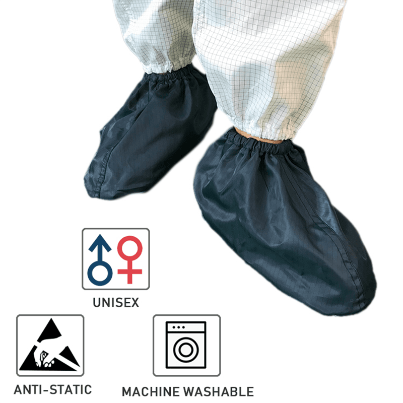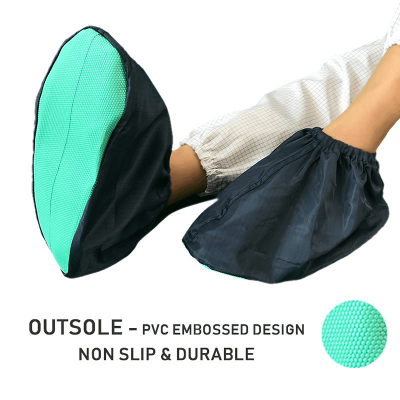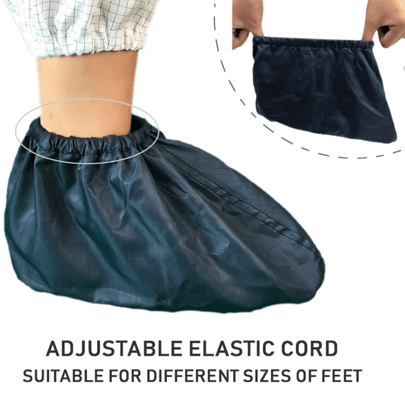 Vores ESD-skoomslag er ikke kun behagelige, men også omhyggeligt designet til at forbedre deres slidstyrke og skridsikre ydeevne. Dette betyder, at uanset om de er på glatte renrumsgulve eller i mere komplekse arbejdsmiljøer, kan skoomslagene give pålidelig beskyttelse og stabil støtte til bæreren. Det holdbare materiale gør det muligt for skoomslagene at forblive i god stand under hyppig brug og forlænge deres levetid.